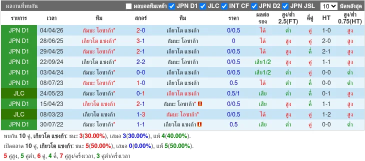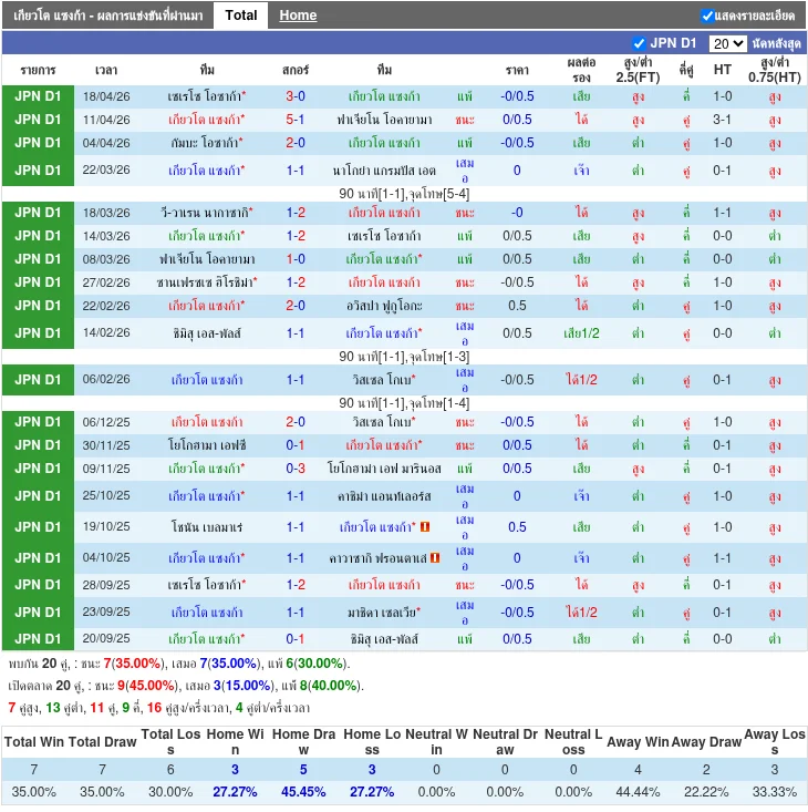 - 2026-04-04 | J1 League | Gamba Osaka vs Kyoto Sanga | 2-0 | ชนะ