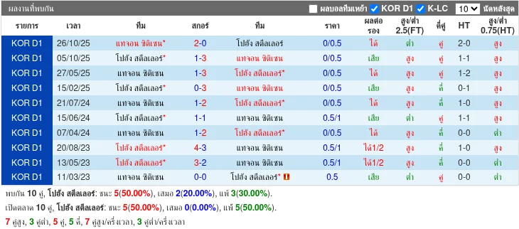 - 2025-05-27 | K League 1 | แแดเจอน ซิตี้เซ็น vs โพฮัง สตีลเลอร์ส | 1-3 | โพฮัง สตีลเลอร์ส