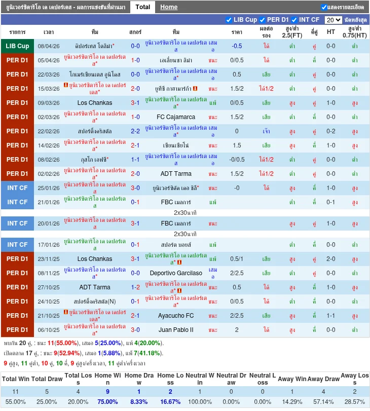 วิเคราะห์บอล โคปา ลิเบอตาดอเรส ระหว่าง ยูนิเวอร์ซิตาริโอ เด เดปอร์เตส vs คอนอูมโบ ยูนิโด [15/04/2026]