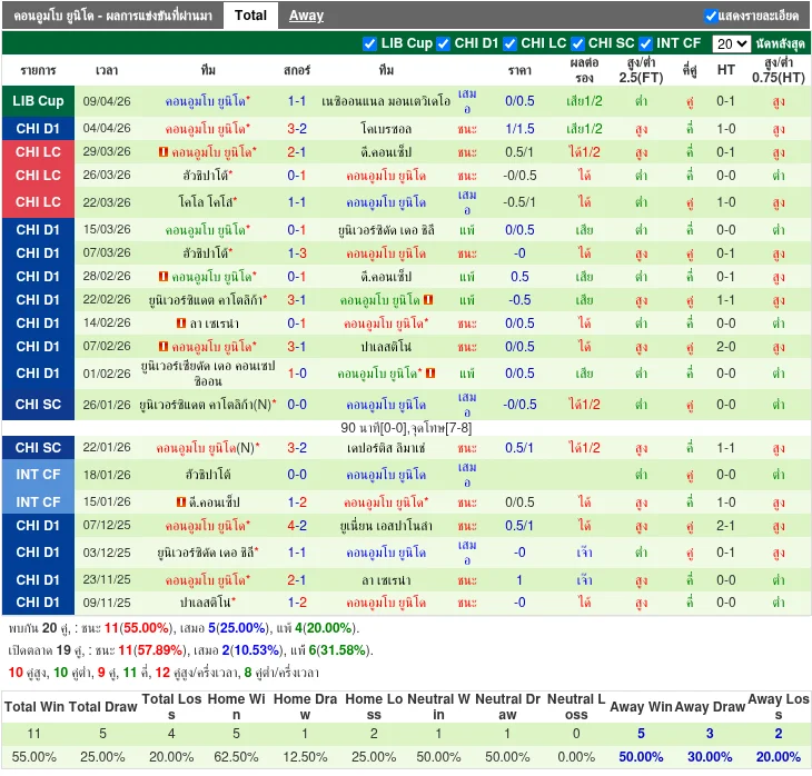ฟอร์มทีมเยือน: คอนอูมโบ ยูนิโด