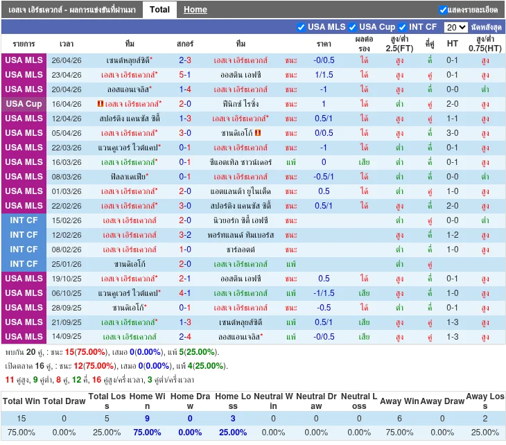 - 2026-04-19T23:00:00+00:00 | Major League Soccer | Los Angeles FC vs San Jose Earthquakes | 1 - 4 | แพ้
