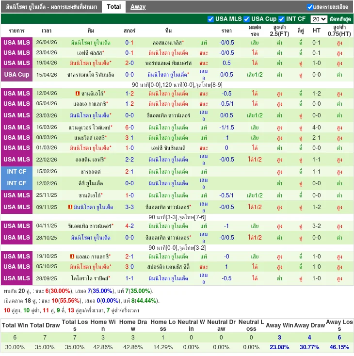 ฟอร์มทีมเยือน: มินนิโซตา ยูไนเต็ด
