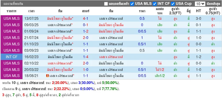 - 2025-03-09T03:30:00+00:00 | Major League Soccer | San Jose Earthquakes vs Minnesota United FC | 0 - 1 | ชนะ